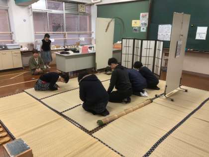 初めてのことなので,地域にお住いの講師の先生のご指導のもと,準備の段階から試行錯誤をしながら,活動をしていました。お茶席での礼儀作法などをいろいろなことを教わる貴重な機会となりました。