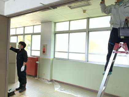 皆さんが休校明けに学校に登校したときに,少しでも明るい気持ちになるように,学校の壁を先生たちで塗装しています。
