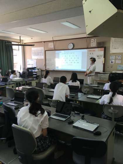 1年生のコンピュータ室での技術の授業の様子です。