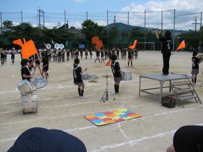 標準服譲り渡し会      吹奏楽部のマーチング     部対抗リレー