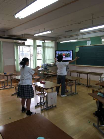 1組は朝学活の終わりに,毎日体操をして1日をスタートしています。