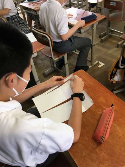試験が終わった翌日ですが,本日の5・6限は下鴨チャレンジデーと銘打って,1・2年生は各教室に分かれ,担当の先生の得意なことで今までにやったことがないことに挑戦しています。