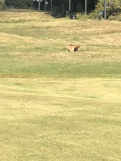 ゲレンデには牛が現れました。歓迎のあいさつをしてくれているかのようです。