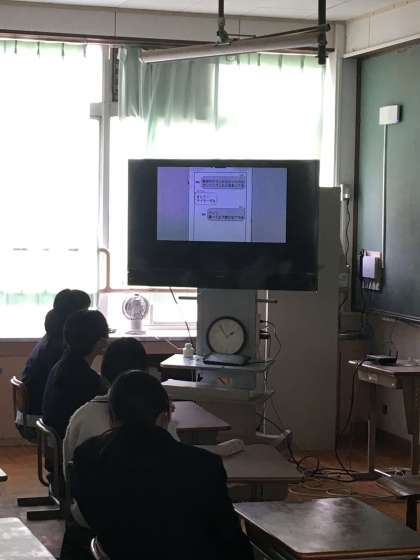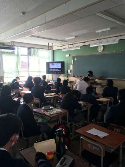 KDDIより講師の先生をお招きし,Zoomで各教室をつなぎお話を聞きました。