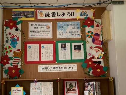 図書室前には,美しいクリスマスバージョンのレイアウトがなされ,一年の締めくくりと時の経つ早さを同時に感じています。