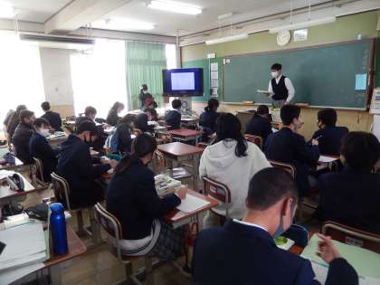 生徒が作成してきた「ムスカ大佐で覚える表現技法」のプリントも活用して授業が進んでいます。