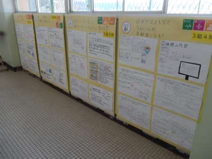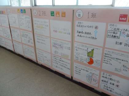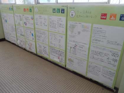 先週の発表会を終えて,各グループの成果が廊下に掲示されています。