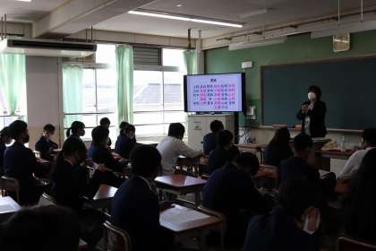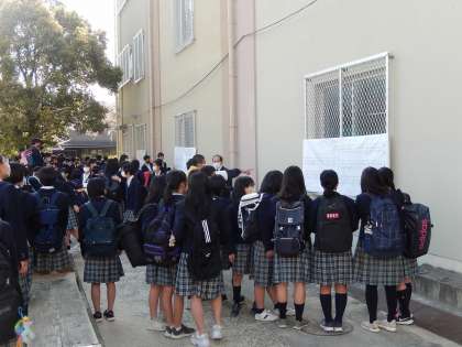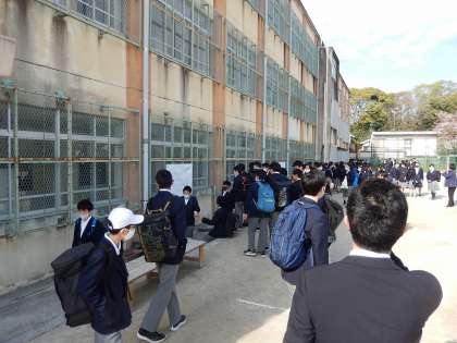 写真はクラス分け発表を見る3年生,2年生,そして学活の一コマ