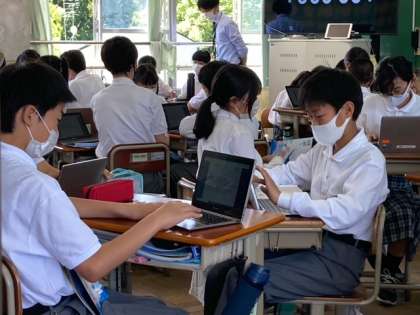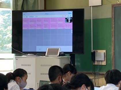 ノートを書くこととうまく併用した授業構成となっており,とても丁寧な文字でノート作りをしている生徒がたくさんいました。