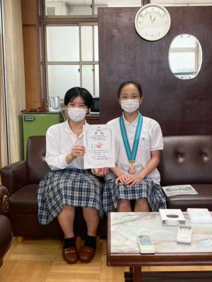本日の昼食終了後,2年生女子生徒が夏季休暇中に実施された夏季水泳大会入賞の報告に校長室を訪れてくれました。