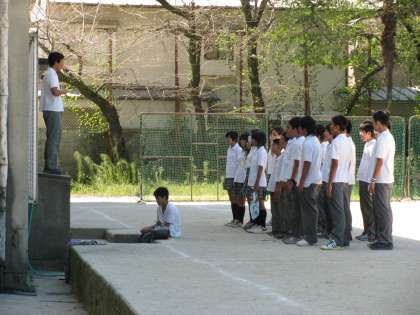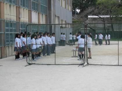 北校舎の北側で練習中 ハンドボールコートは練習場所?