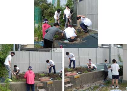 1学期には,ブロック塀をフェンスに改修する工事が実施されたため,手掛けることができませんでした。改めて一からの整備作業です。