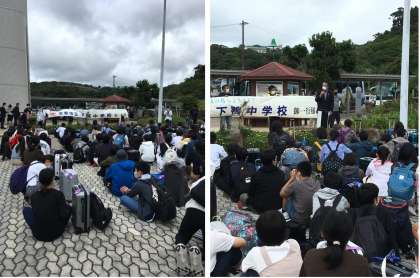 入島式。歓迎の皆様に迎えられました。