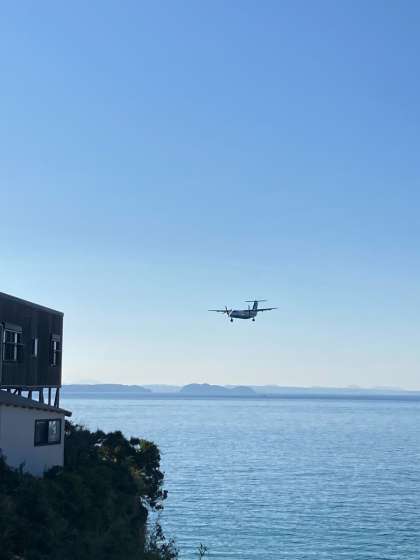 着陸直前の飛行機が見えました。