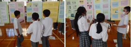 2年生が夏休み前から個々に研究してきた成果を発表するポスターセッション。