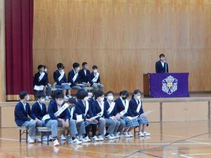 今年度も立会演説会は,演説者は体育館で,聴衆は各教室でZOOMを通して視聴する形で実施しました。この後,各教室で投票を行いました。