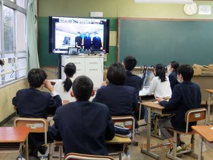 終業式の午後,冬の「左京支部生徒会交流会」が行われました。下鴨中学校は生徒会本部役員が全員参加しました。各校の生徒会活動の悩みを話し合い,解決方法についての考えを交流しあいました。