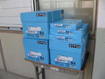 その際に集まった協力金で、コピー用紙を寄付していただきました。京都市の財政難から年々学校の予算が少なくなる中で、たいへん嬉しいご寄付をいただきました。本当にありがとうございました。大切に使わせていただきます。