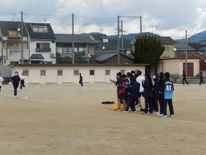 水曜日の午前,雪の残る中で走る1年生・3年生