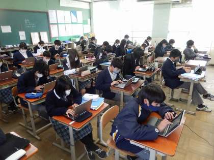 対面せずにグループワーク  1年生英語科