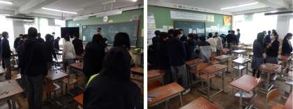 写真の1・2枚目は最終の社会科に取り組む1年生,