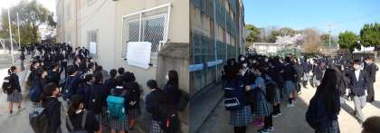 今日は,クラス発表を待っていたのか,多くの生徒が早めに登校していました。