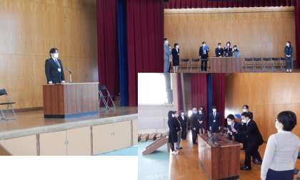 着任式は,着任の教職員の紹介から始まり,代表の教職員のあいさつ,生徒代表による歓迎のことばと続きました。