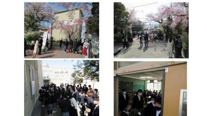 9:15から新入生のクラス発表が行われました。貼りだされると,大きな歓声があがりました。新しいクラスはどうでしょう。緊張の面持ちで教室へいったん移動します。