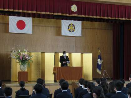 149名の生徒が入学してきました。伝統ある下鴨中学校へようこそ。充実した3年間が送れますように。式自体はコロナ対策で短いものでしたが,新入生もしっかりと話を聞いていました。また,たくさんの保護者のご臨席,ありがとうございました