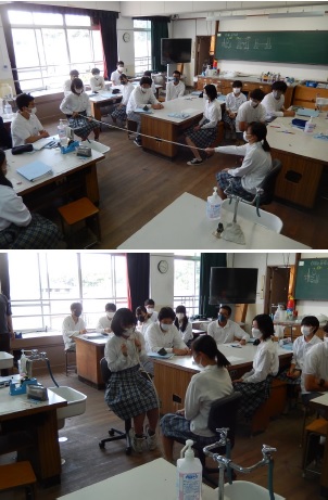 台車や事務椅子を用いた確認を基に「作用・反作用」について学んでいます。