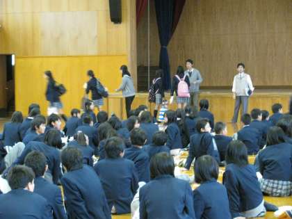 11月11日(金)5時間目、2年生は14日(月)から始まる「生き方探究・チャレンジ体験」に向けて、激励会を行いました。