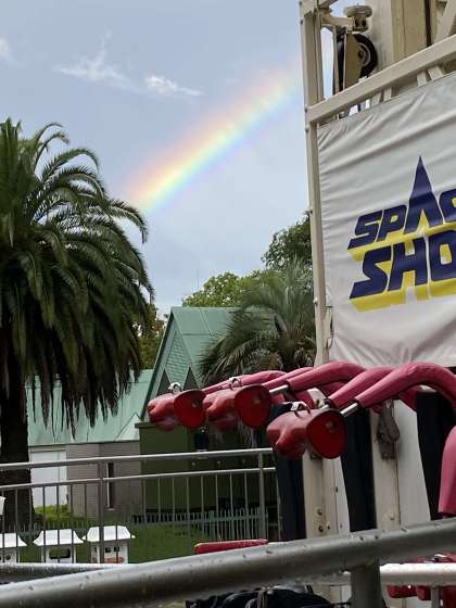 ナガシマスパーランドでは1時間以上の激しい雨にも見舞われましたが,5時前に虹に見送られながら発ちました。
