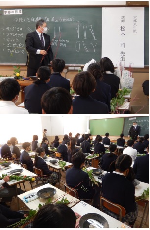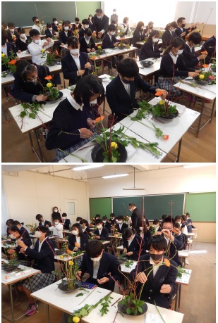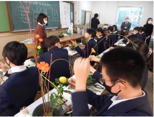 基本的な事柄について講師の松本先生から説明を聞きます。後半の時間は思い思いに生けていきます。