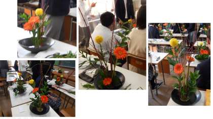 水曜日に2学級(1組は交流)、本日2学級で実施しました。共通の花材でも、一人ひとりの個性が表れています。