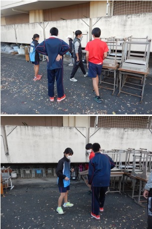 廃棄する古い机91台と古い椅子56脚の移動作業。練習前のサッカー部員と陸上部員が協力してあたってくれました。15分で完了。どうもありがとうございました。