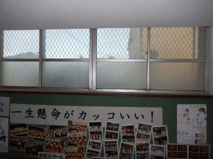 生活委員会では「これまであまり手がつかなかった場所の掃除」に取り組んでおり、今日のテーマは「窓のさん」でした。踊り場の窓からホコリやクモの巣が除去されました。