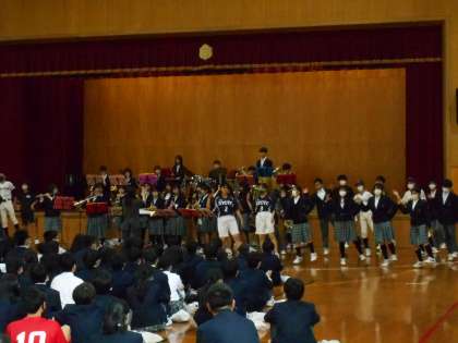 吹奏楽部の歓迎演奏、部活の有志によるダンス、教科担当の紹介や委員会の紹介。