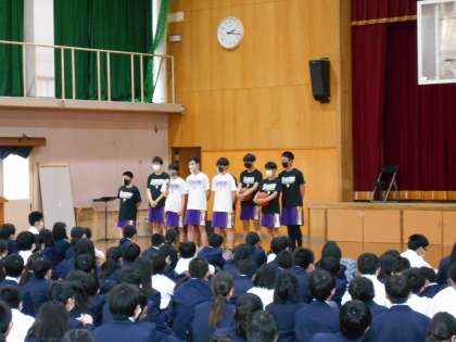 校歌の合唱、記念品の贈呈の後は部活動紹介がありました。