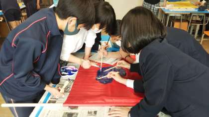 各クラスの代表生徒が学級旗の作成をしています。