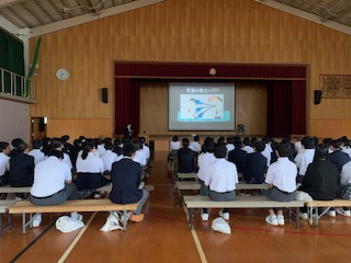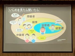 しっかり聞いていた1年生、いじめの構図についても学びました。