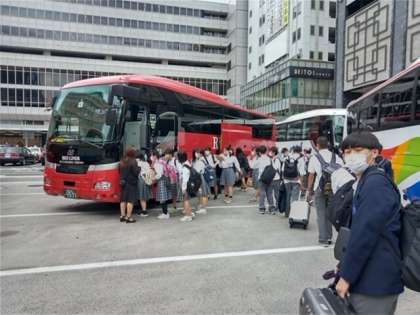 平和記念公園に向けてバスが出発しました。