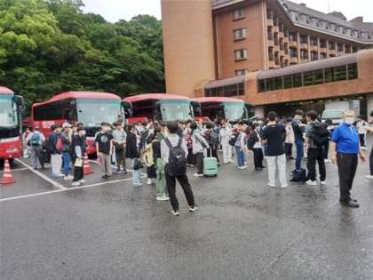 長崎の市内班別研修に向けて、出発準備をしているところです。