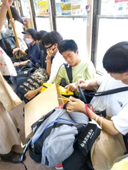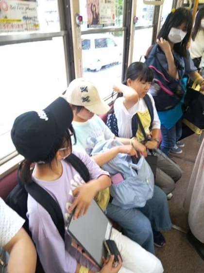 長崎市内を走る路面電車に乗り、集合場所へ向かっています。