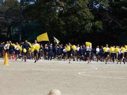 応援合戦で気持ちを一つにして、午後からも頑張ります。