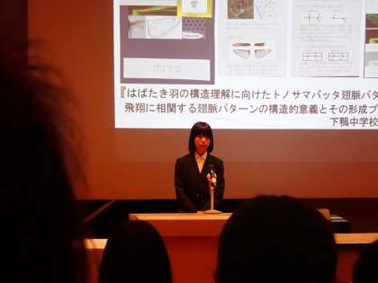 2年生 Tさん 『はばたき羽の構造理解に向けたトノサマバッタ翅脈パターンの解読 〜飛翔に相関する翅脈パターンの構造的意義とその形成プログラムの解析〜』