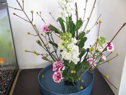 3月14日(水)4時間目ちょうど12時頃、近所の女性が、「明日は卒業式ですね」と、花を生けに来て下さいました。