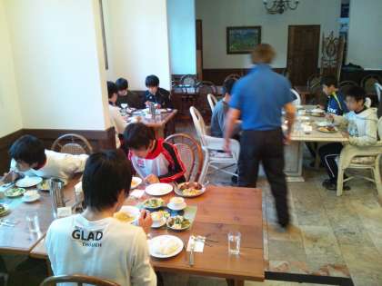 各クラス ペンションで夕食です。「いただきまーす。」