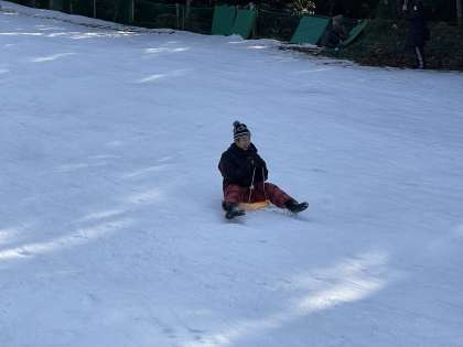 そりすべりをして冬の自然を楽しんでいます。