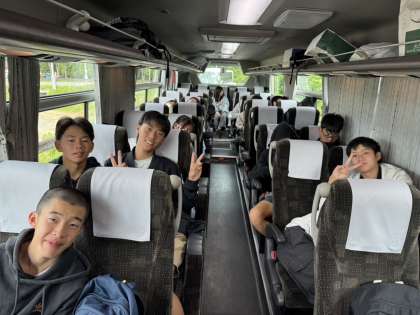 朝は予定通りバスを出発し、7時30分からバスレクで盛り上がっているクラス、