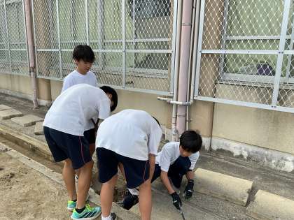 溝の掃除を行いました。重労働でしたが,休憩をはさみながら頑張りました。